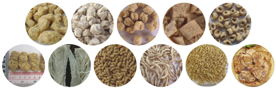 組織蛋白加工設備是我公司根據國內外市場的需求,根據多年的擠壓膨化技術,向市場推出的一種生產高蛋白、高纖維的膨化設備。組織蛋白生產線以低溫豆粕、花生粕為主要原料,經粉磨、攪拌、調質、高溫、高壓、高剪切,將球形蛋白質分子打開成鏈狀并重新組織化,形成如肉狀纖維結構的新型食品;其產品營養價值高,具有肉的狀態和口感,不含膽固醇和動物脂肪,具有吸油、吸水、吸味的特點;廣泛用于火腿、香腸、罐頭快餐及速凍食品等各類行業