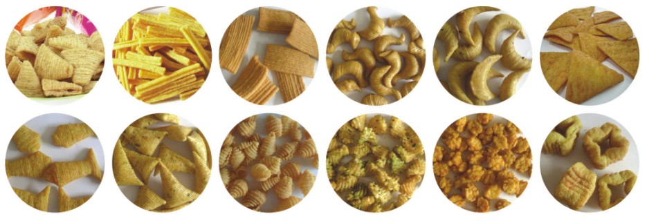 5.生產(chǎn)流程:原料混合→擠壓膨化→整形切斷→油炸→甩油→調(diào)味→包裝(設(shè)備配置靈活)